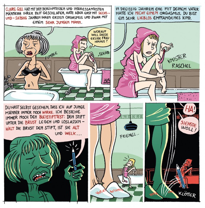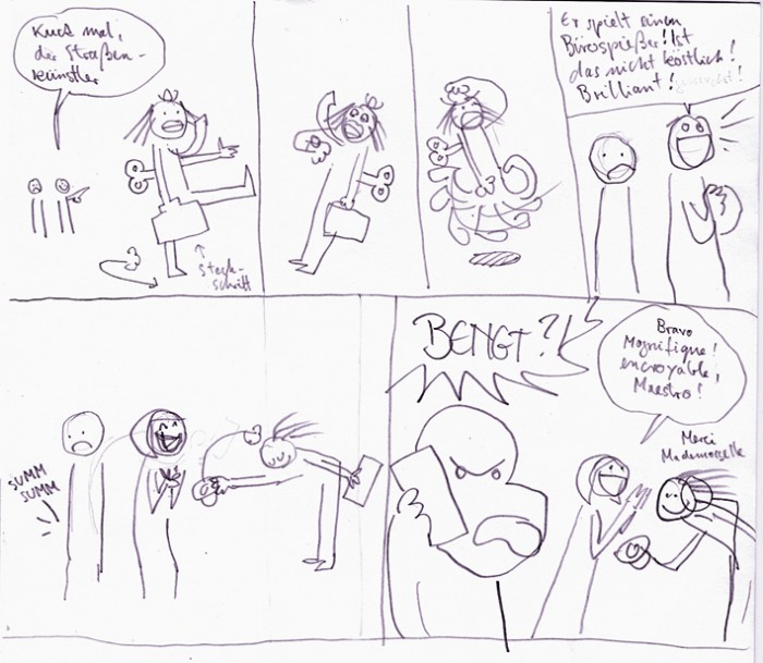Dritter Versuch, ganz neuer Ansatz: Doch die Gundel Gaukeley- Pose stieß allenthalben auf völlige Ablehnung („Dorle ist doch gar nicht so böse…!“). Wieder in die Tonne!